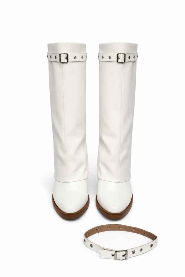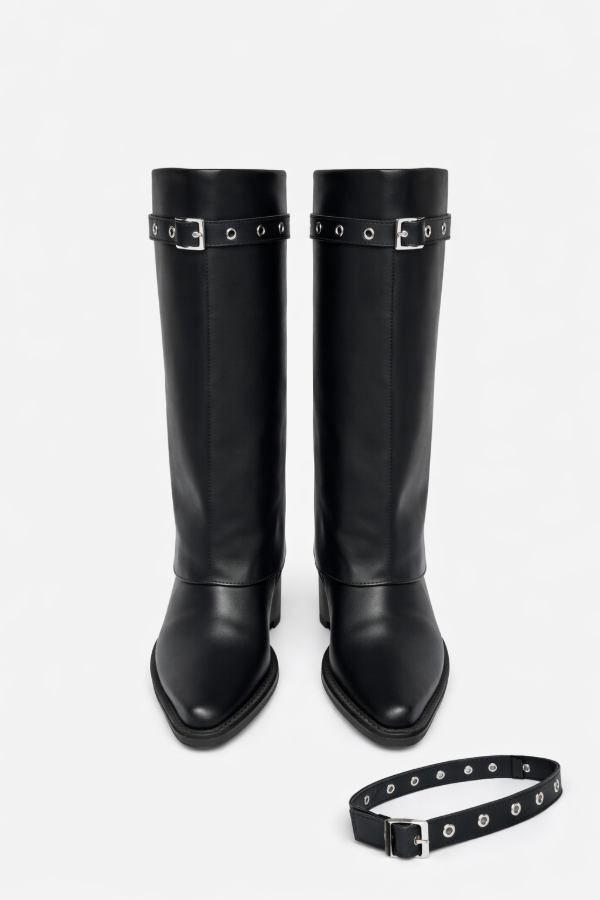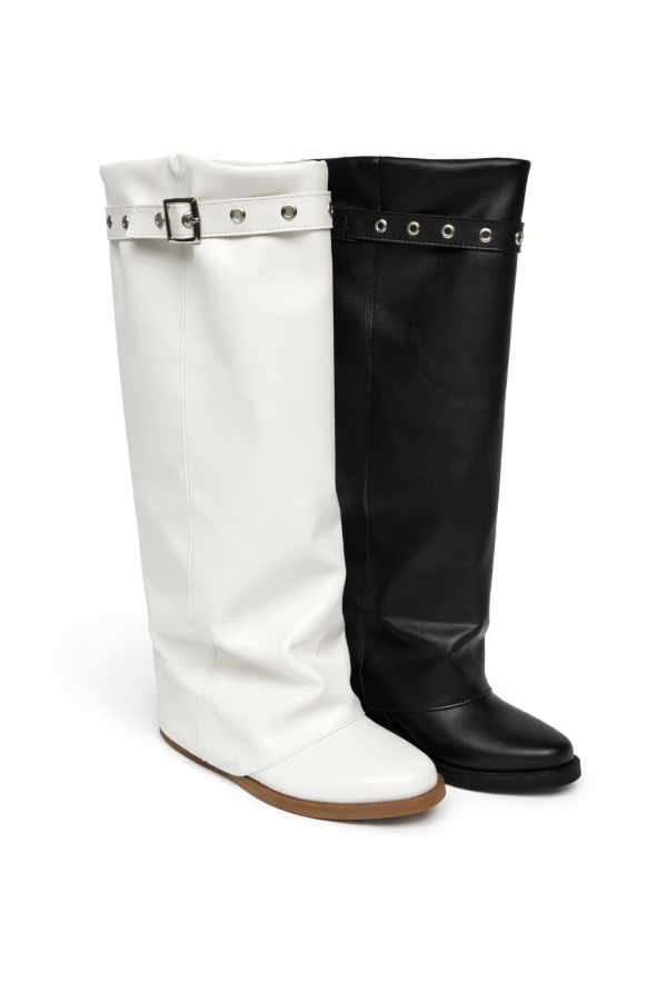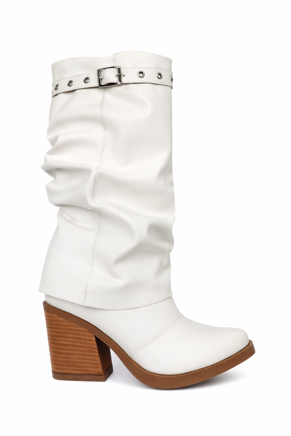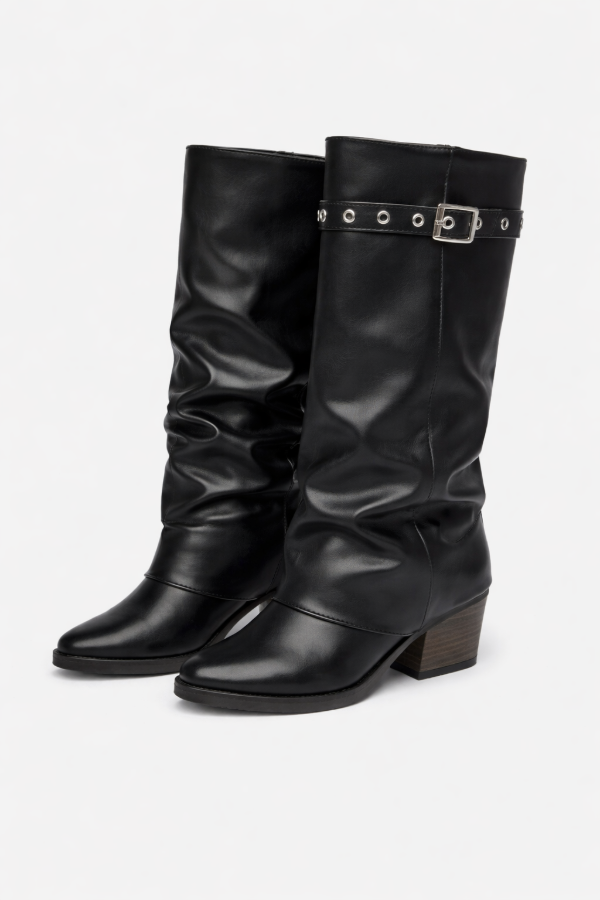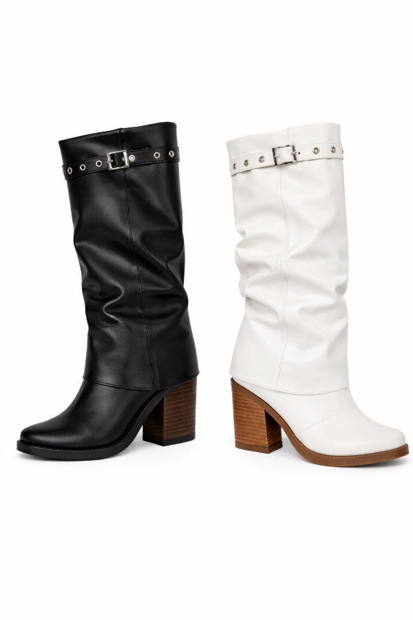 Bota caña media con diseño moderno y elegante. Confeccionada en material suave que genera un efecto levemente fruncido en la caña. Cuenta con detalle de tira con hebilla y ojales metálicos que le aportan estilo. Su taco ancho símil madera brinda comodidad y estabilidad para usar todo el día. Un modelo versátil que combina perfecto con jeans, vestidos o looks más urbanos. Disponible en negro y blanco. ✨👢