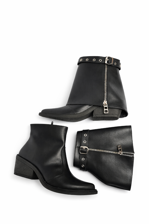 La bota Renata es uno de los modelos más versátiles de la temporada. Su diseño incluye una caña desmontable con cierre, que permite usarla de dos maneras diferentes según el look que quieras lograr.