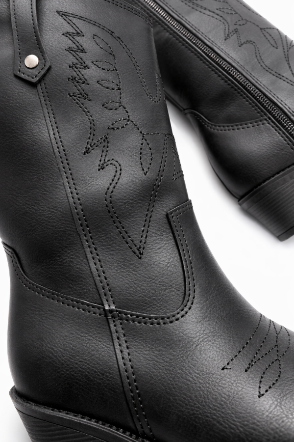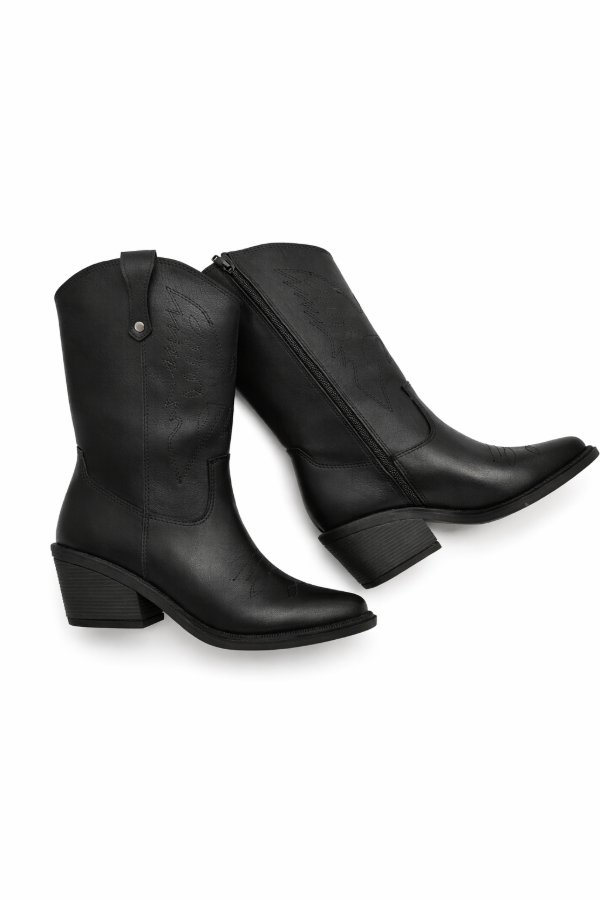 Diseño estilo texano con caña media y delicados bordados que realzan su estética clásica. Confeccionadas en material de alta calidad, cómodas y versátiles para usar todos los días. Su taco firme brinda buena altura sin perder comodidad.