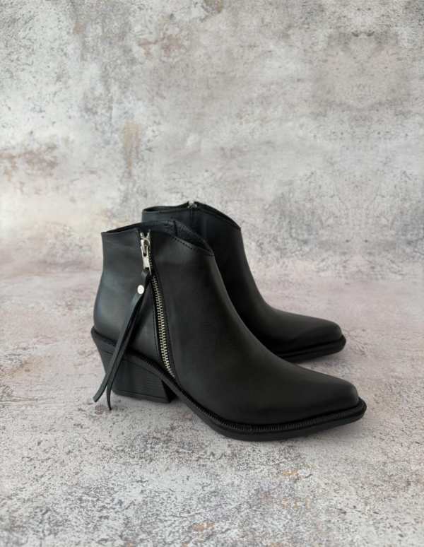 Botas de cuero vacuno, con diseño limpio y detalle de cierre lateral que marca la diferencia.