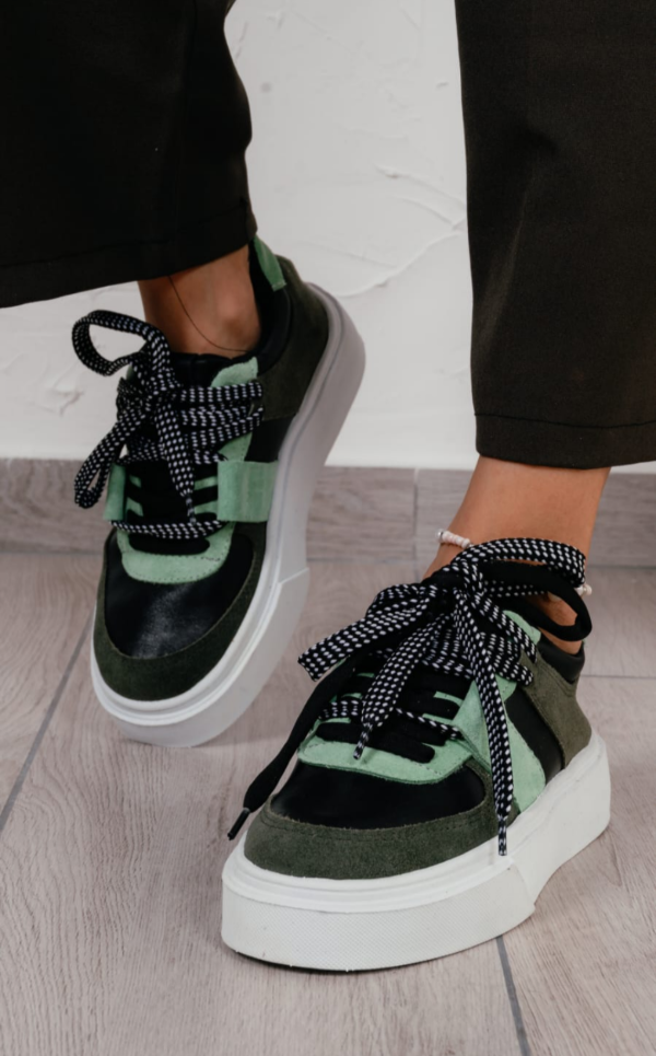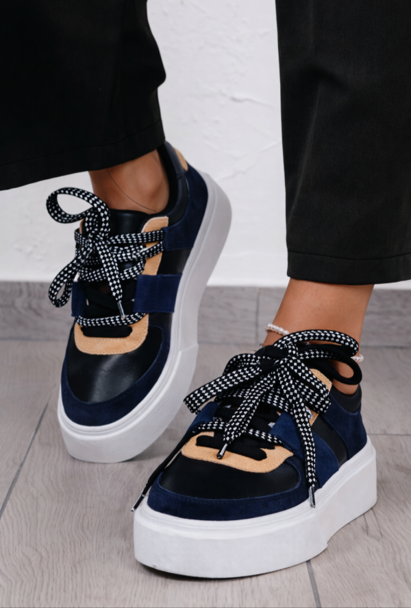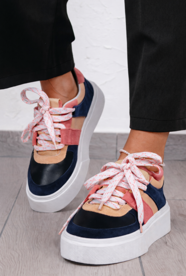 Zapatillas con plataforma, mix de texturas y ese toque de color que levanta cualquier look.